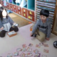 「明けましておめでとうございます」久しぶりの登園でしたが、みんなで元気に挨拶しました。幼児クラスの交流として「お正月あそび」をしました。 福笑い カルタあそび すごろく