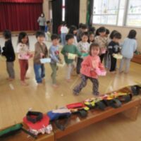 幼児3クラスがホールに集まって「節分集会」をしました。 節分の由来を聞き、各クラスごと自分で作った鬼のお面を紹介し、「豆まき」の歌をみんなで歌いました。 自分で作ったお面に向かって豆まき!「おにはそと!」「ふくはうち」 …