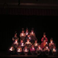 楽しみにしていた「クリスマス会」5才児の合奏と歌から始まります。 “エンジョイベル”さんがハンドベルの演奏をしてくださいました 5才児によるキャンドルサービス サンタクロースからのプレゼントも