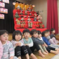 ホールに集まってみんなが作った「ひな飾り」をみて、歌を歌ってたのしい時間を過ごしました。 ひなまつりばすっけっと
