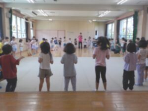 一泊保育で楽しむ「てとてとてと」を年長のお兄さんお姉さんから教わりました
