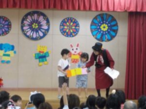園庭やホールで在園児も卒園児も一緒にゲームをしたり、飲んで・食べて・イベントをしてのたのしい催しです。