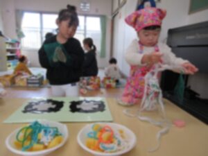「おいものみそ汁おいしいかな~」と絵本を見ながら楽しみにしています。