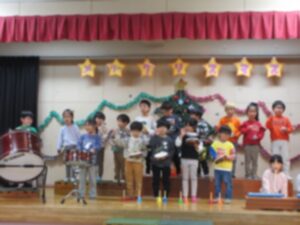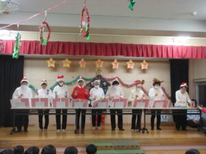 楽しみにしていた「クリスマス会」5才児の合奏と歌から始まります。